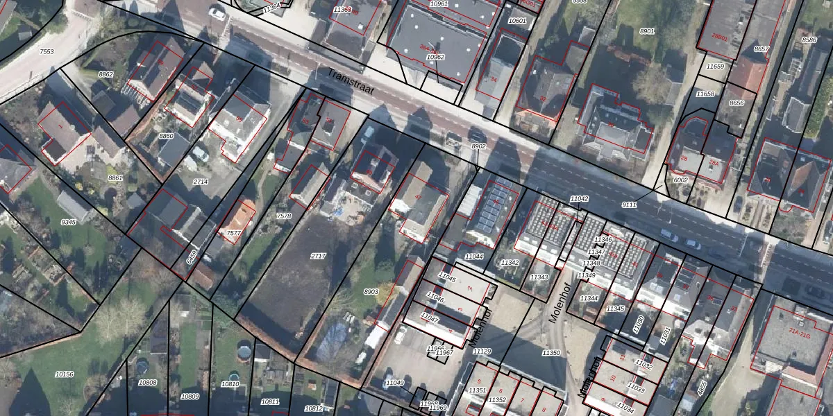 Het perceel waarop Tramstraat 47 staat heeft een oppervlakte van 934 m². Dit is een groot perceel. De perceeloppervlakte wordt geregistreerd door het Kadaster. Gedetailleerde informatie over de maten van dit perceel kunt u vinden in het rapport Kadastrale kaart met maatvoering van Tramstraat 47.