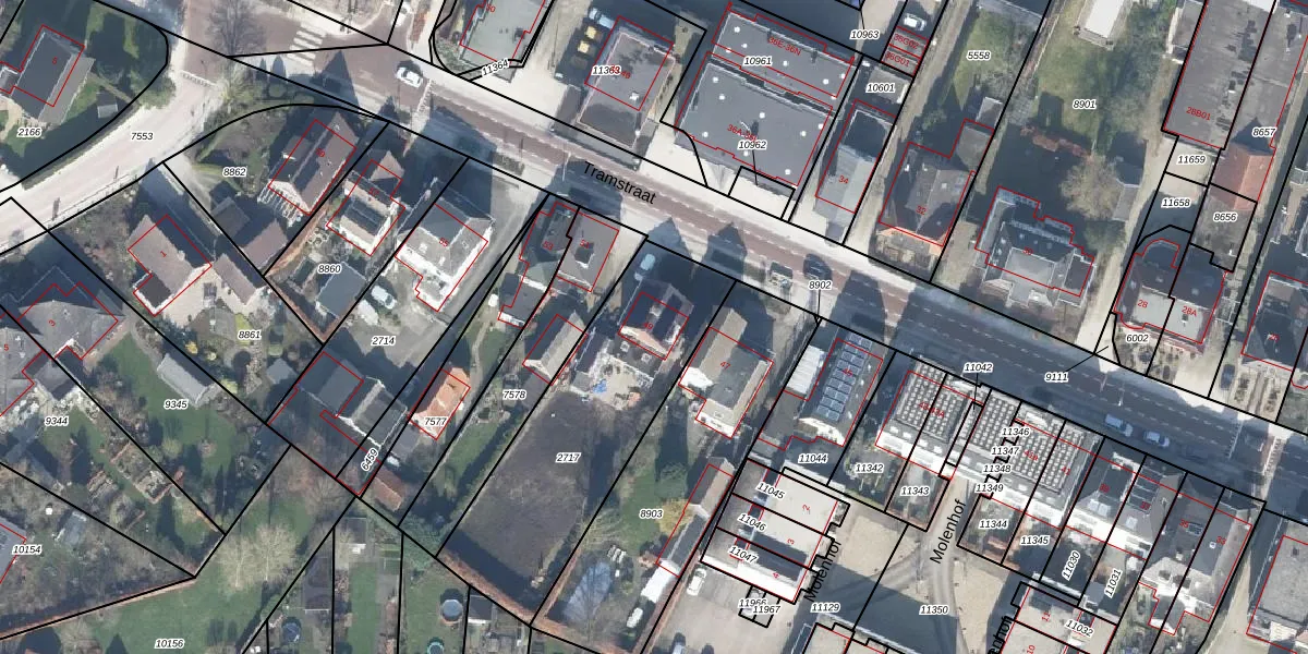 Gebruik de zoekbalk of klik op een perceel voor informatie over de adressen binnen dit perceel.