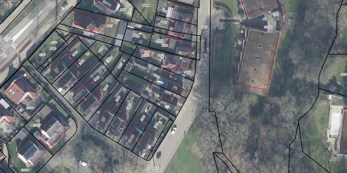 Het perceel waarop Tusseler 30 staat heeft een oppervlakte van 408 m². Dit is een groot perceel. De perceeloppervlakte wordt geregistreerd door het Kadaster. Gedetailleerde informatie over de maten van dit perceel kunt u vinden in het rapport Kadastrale kaart met maatvoering van Tusseler 30.