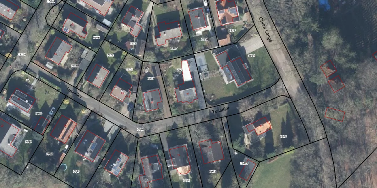 Tusseler 67 is gelegen op kadastraal perceel LCM00B7976. Deze kadastrale aanduiding is uniek en wordt gebruikt door het Kadaster om eigendomsrechten en andere zakelijke rechten vast te leggen. Het perceel maakt onderdeel uit van de kadastrale gemeente Lochem.