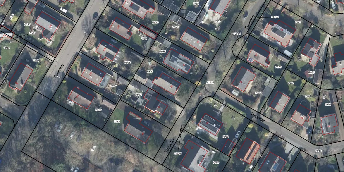 Het perceel waarop Tusseler 89 staat heeft een oppervlakte van 520 m². Dit is een groot perceel. De perceeloppervlakte wordt geregistreerd door het Kadaster. Gedetailleerde informatie over de maten van dit perceel kunt u vinden in het rapport Kadastrale kaart met maatvoering van Tusseler 89.