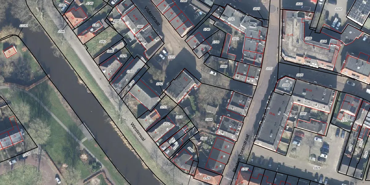 Het perceel waarop Vilderstraat 11 staat heeft een oppervlakte van 1342 m². Dit is een zeer groot perceel. De perceeloppervlakte wordt geregistreerd door het Kadaster. Gedetailleerde informatie over de maten van dit perceel kunt u vinden in het rapport Kadastrale kaart met maatvoering van Vilderstraat 11.