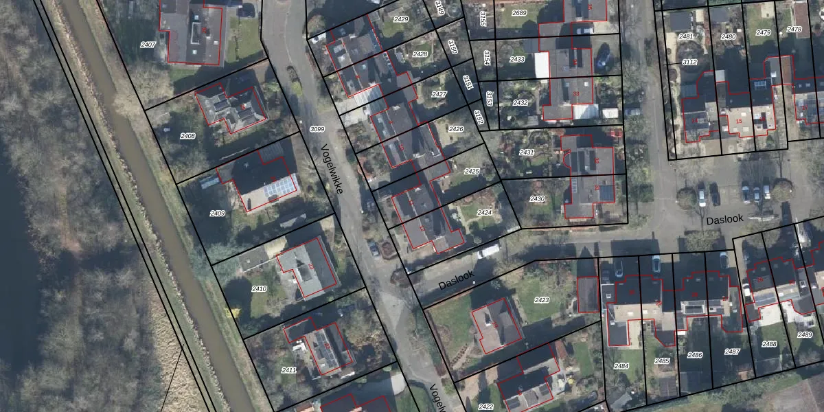 Gebruik de zoekbalk of klik op een perceel voor informatie over de adressen binnen dit perceel.