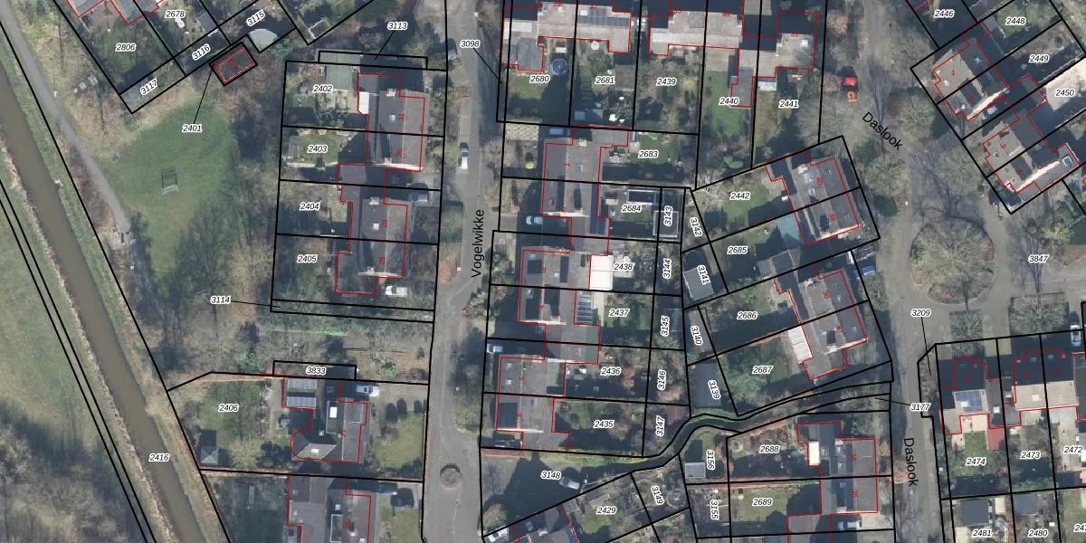 Gebruik de zoekbalk of klik op een perceel voor informatie over de adressen binnen dit perceel.