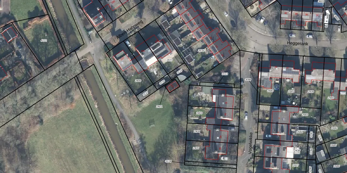 Gebruik de zoekbalk of klik op een perceel voor informatie over de adressen binnen dit perceel.