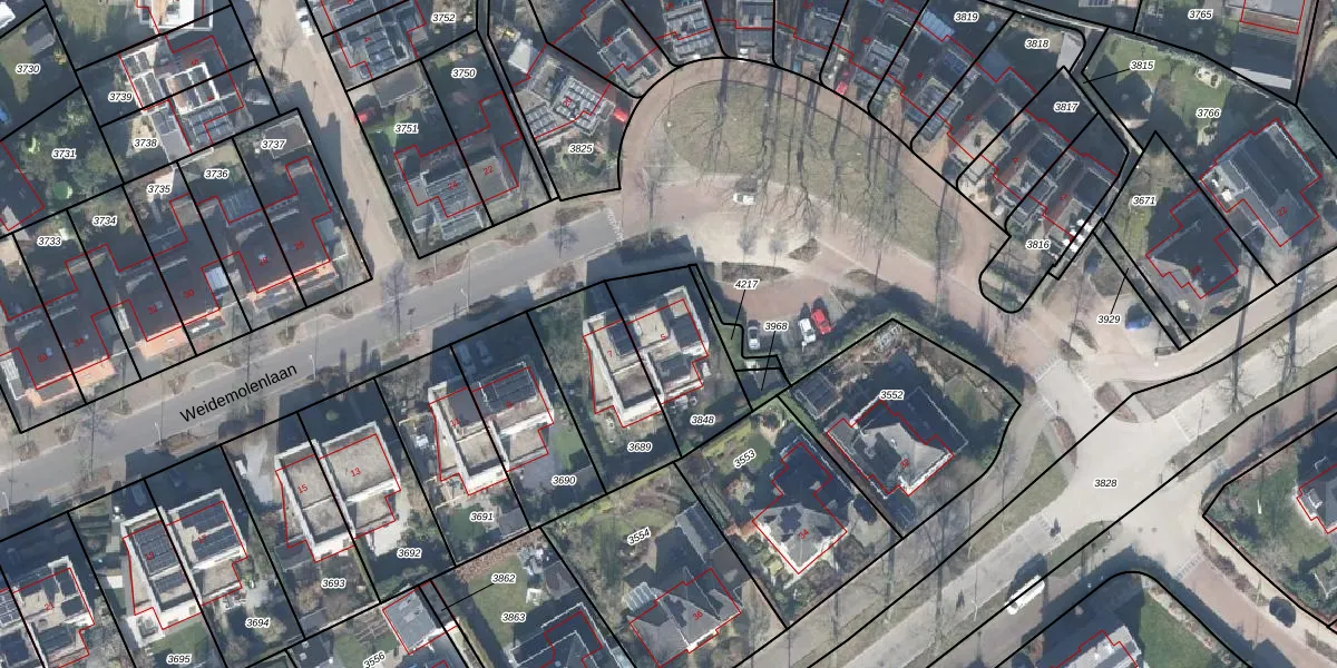 Weidemolenlaan 5 is gelegen op kadastraal perceel LCM00E3848. Deze kadastrale aanduiding is uniek en wordt gebruikt door het Kadaster om eigendomsrechten en andere zakelijke rechten vast te leggen. Het perceel maakt onderdeel uit van de kadastrale gemeente Lochem.