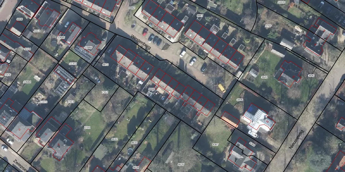 Het perceel waarop Westenberg 22 staat heeft een oppervlakte van 1795 m². Dit is een zeer groot perceel. De perceeloppervlakte wordt geregistreerd door het Kadaster. Gedetailleerde informatie over de maten van dit perceel kunt u vinden in het rapport Kadastrale kaart met maatvoering van Westenberg 22.