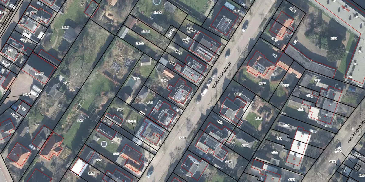 Het perceel waarop Wilhelminalaan 16 staat heeft een oppervlakte van 400 m². Dit is een groot perceel. De perceeloppervlakte wordt geregistreerd door het Kadaster. Gedetailleerde informatie over de maten van dit perceel kunt u vinden in het rapport Kadastrale kaart met maatvoering van Wilhelminalaan 16.