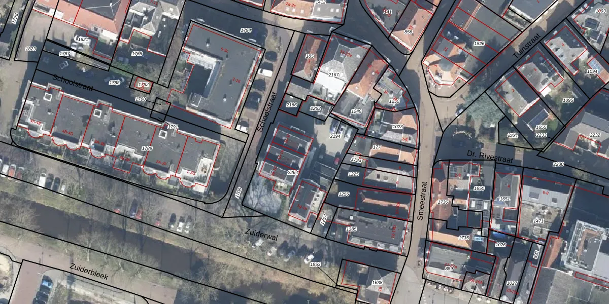 Het perceel waarop Zuiderwal 1-c staat heeft een oppervlakte van 927 m². Dit is een groot perceel. De perceeloppervlakte wordt geregistreerd door het Kadaster. Gedetailleerde informatie over de maten van dit perceel kunt u vinden in het rapport Kadastrale kaart met maatvoering van Zuiderwal 1-c.