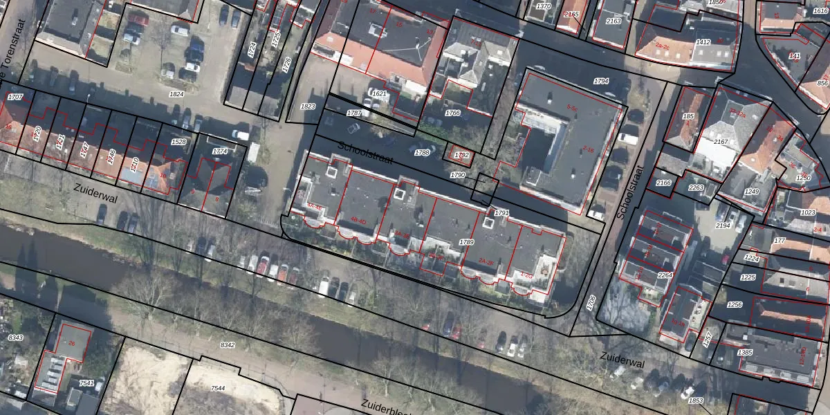 Het perceel waarop Zuiderwal 3-e staat heeft een oppervlakte van 1787 m². Dit is een zeer groot perceel. De perceeloppervlakte wordt geregistreerd door het Kadaster. Gedetailleerde informatie over de maten van dit perceel kunt u vinden in het rapport Kadastrale kaart met maatvoering van Zuiderwal 3-e.