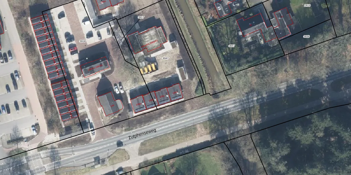 Zutphenseweg 106-z is gelegen op kadastraal perceel LCM00E3047. Deze kadastrale aanduiding is uniek en wordt gebruikt door het Kadaster om eigendomsrechten en andere zakelijke rechten vast te leggen. Het perceel maakt onderdeel uit van de kadastrale gemeente Lochem.