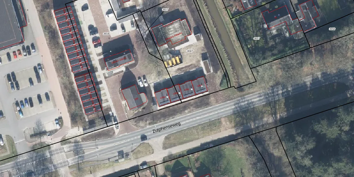 Zutphenseweg 106-x is gelegen op kadastraal perceel LCM00E3047. Deze kadastrale aanduiding is uniek en wordt gebruikt door het Kadaster om eigendomsrechten en andere zakelijke rechten vast te leggen. Het perceel maakt onderdeel uit van de kadastrale gemeente Lochem.