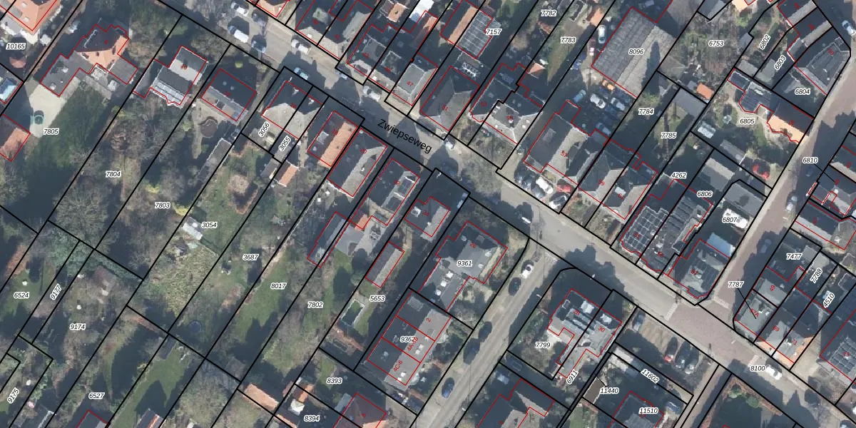 Gebruik de zoekbalk of klik op een perceel voor informatie over de adressen binnen dit perceel.