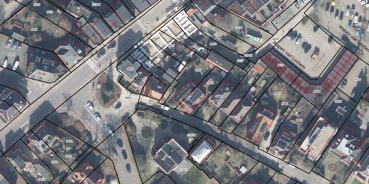 Gebruik de zoekbalk of klik op een perceel voor informatie over de adressen binnen dit perceel.