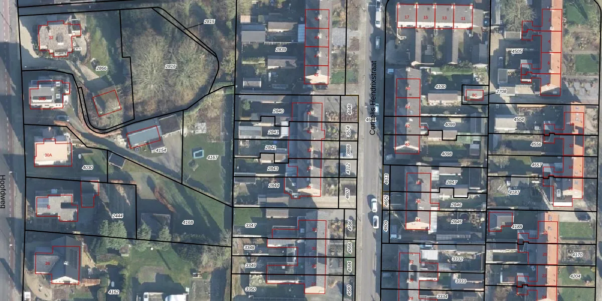 Gebruik de zoekbalk of klik op een perceel voor informatie over de adressen binnen dit perceel.