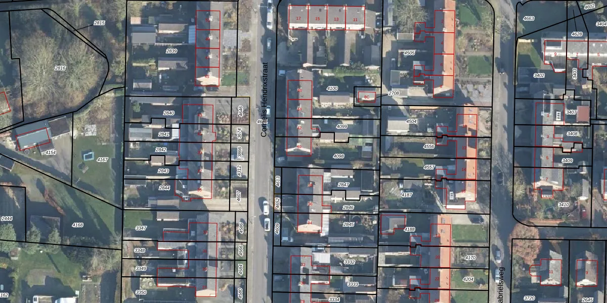 Het perceel waarop Cornelis Hendrixstraat 40 staat heeft een oppervlakte van 360 m². Dit is een groot perceel. De perceeloppervlakte wordt geregistreerd door het Kadaster. Gedetailleerde informatie over de maten van dit perceel kunt u vinden in het rapport Kadastrale kaart met maatvoering van Cornelis Hendrixstraat 40.