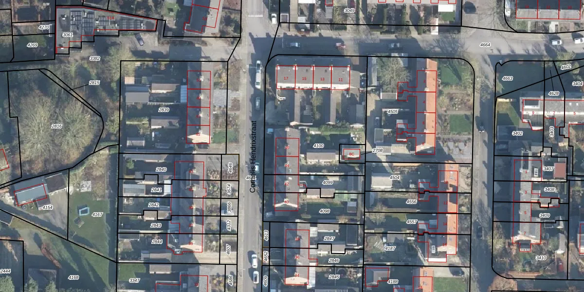 Het perceel waarop Cornelis Hendrixstraat 46 staat heeft een oppervlakte van 1365 m². Dit is een zeer groot perceel. De perceeloppervlakte wordt geregistreerd door het Kadaster. Gedetailleerde informatie over de maten van dit perceel kunt u vinden in het rapport Kadastrale kaart met maatvoering van Cornelis Hendrixstraat 46.