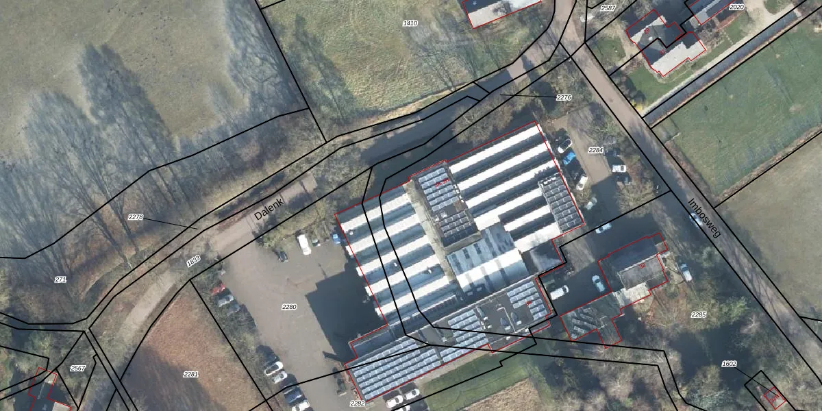 Het perceel waarop Dalenk 3-D staat heeft een oppervlakte van 2585 m². Dit is een zeer groot perceel. De perceeloppervlakte wordt geregistreerd door het Kadaster. Gedetailleerde informatie over de maten van dit perceel kunt u vinden in het rapport Kadastrale kaart met maatvoering van Dalenk 3-D.