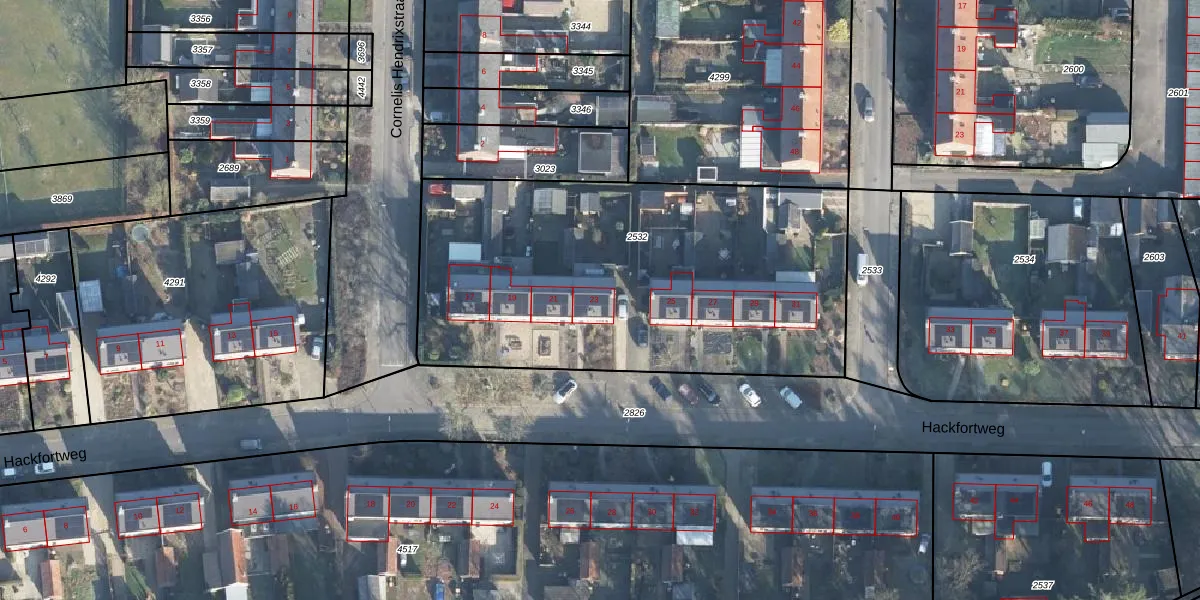 Het perceel waarop Hackfortweg 23 staat heeft een oppervlakte van 2246 m². Dit is een zeer groot perceel. De perceeloppervlakte wordt geregistreerd door het Kadaster. Gedetailleerde informatie over de maten van dit perceel kunt u vinden in het rapport Kadastrale kaart met maatvoering van Hackfortweg 23.