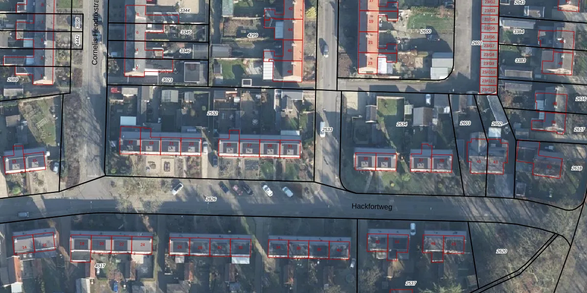 Het perceel waarop Hackfortweg 31 staat heeft een oppervlakte van 2246 m². Dit is een zeer groot perceel. De perceeloppervlakte wordt geregistreerd door het Kadaster. Gedetailleerde informatie over de maten van dit perceel kunt u vinden in het rapport Kadastrale kaart met maatvoering van Hackfortweg 31.