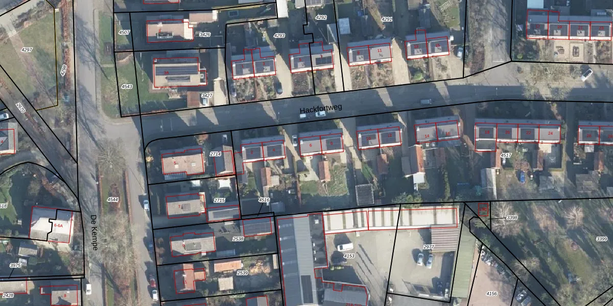 Het perceel waarop Hackfortweg 6 staat heeft een oppervlakte van 5354 m². Dit is een zeer groot perceel. De perceeloppervlakte wordt geregistreerd door het Kadaster. Gedetailleerde informatie over de maten van dit perceel kunt u vinden in het rapport Kadastrale kaart met maatvoering van Hackfortweg 6.
