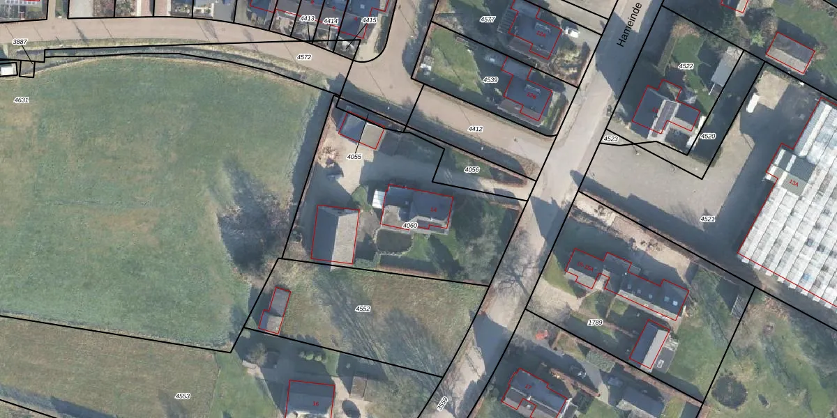Het perceel waarop Hameinde 14 staat heeft een oppervlakte van 1480 m². Dit is een zeer groot perceel. De perceeloppervlakte wordt geregistreerd door het Kadaster. Gedetailleerde informatie over de maten van dit perceel kunt u vinden in het rapport Kadastrale kaart met maatvoering van Hameinde 14.