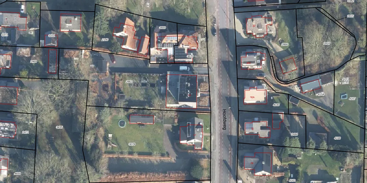Het perceel waarop Hoofdweg 19 staat heeft een oppervlakte van 2139 m². Dit is een zeer groot perceel. De perceeloppervlakte wordt geregistreerd door het Kadaster. Gedetailleerde informatie over de maten van dit perceel kunt u vinden in het rapport Kadastrale kaart met maatvoering van Hoofdweg 19.