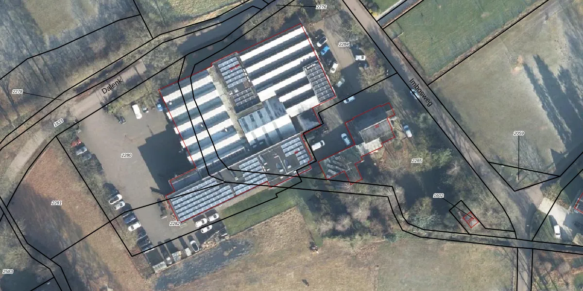 Het perceel waarop Imbosweg 30 staat heeft een oppervlakte van 2585 m². Dit is een zeer groot perceel. De perceeloppervlakte wordt geregistreerd door het Kadaster. Gedetailleerde informatie over de maten van dit perceel kunt u vinden in het rapport Kadastrale kaart met maatvoering van Imbosweg 30.