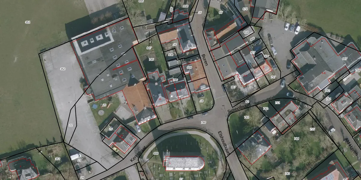 Het perceel waarop Kerkstraat 6 staat heeft een oppervlakte van 916 m². Dit is een groot perceel. De perceeloppervlakte wordt geregistreerd door het Kadaster. Gedetailleerde informatie over de maten van dit perceel kunt u vinden in het rapport Kadastrale kaart met maatvoering van Kerkstraat 6.