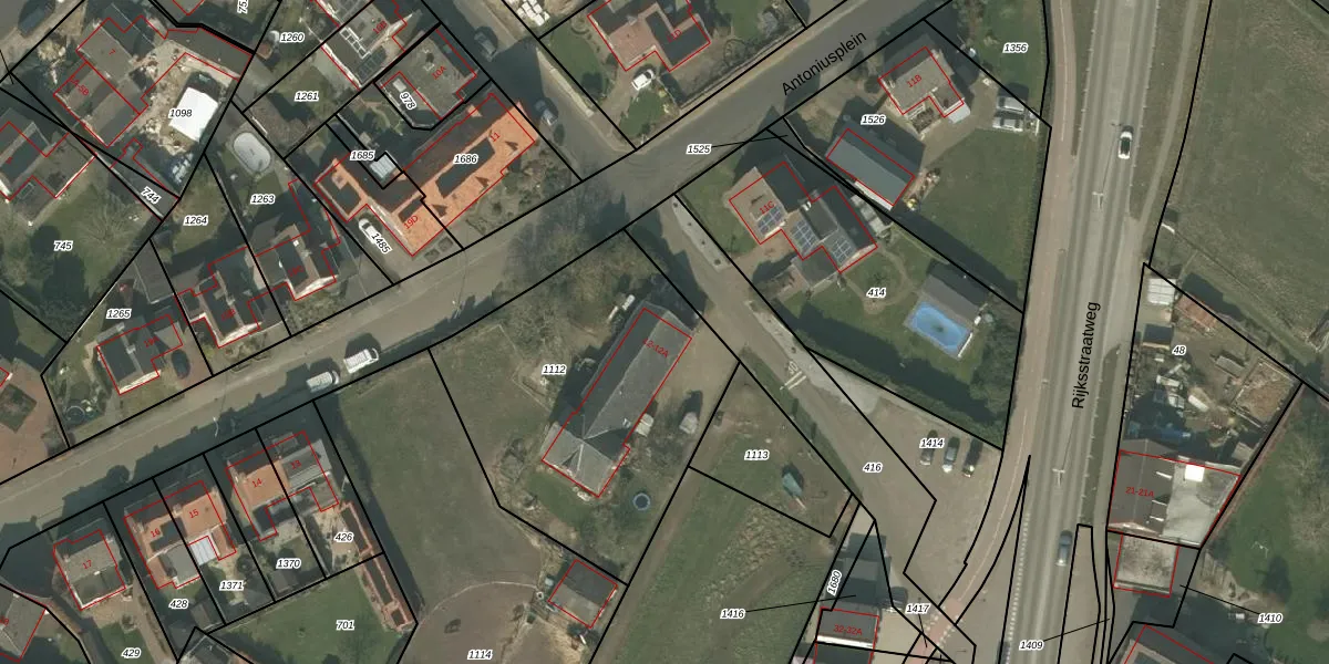 Het perceel waarop Antoniusplein 12 staat heeft een oppervlakte van 1420 m². Dit is een zeer groot perceel. De perceeloppervlakte wordt geregistreerd door het Kadaster. Gedetailleerde informatie over de maten van dit perceel kunt u vinden in het rapport Kadastrale kaart met maatvoering van Antoniusplein 12.