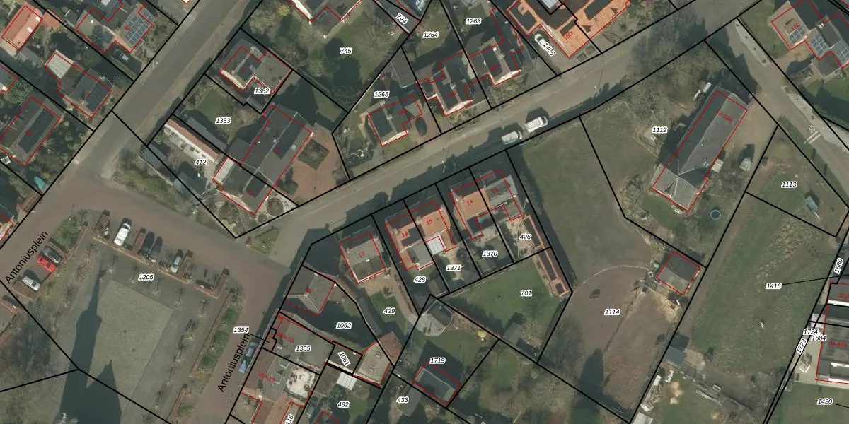 Antoniusplein 15 is gelegen op kadastraal perceel ACN00F1371. Deze kadastrale aanduiding is uniek en wordt gebruikt door het Kadaster om eigendomsrechten en andere zakelijke rechten vast te leggen. Het perceel maakt onderdeel uit van de kadastrale gemeente Arcen en Velden.
