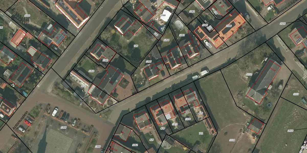 Het perceel waarop Antoniusplein 19-A staat heeft een oppervlakte van 407 m². Dit is een groot perceel. De perceeloppervlakte wordt geregistreerd door het Kadaster. Gedetailleerde informatie over de maten van dit perceel kunt u vinden in het rapport Kadastrale kaart met maatvoering van Antoniusplein 19-A.