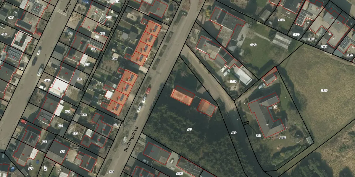 Het perceel waarop Bosbergstraat 13 staat heeft een oppervlakte van 2155 m². Dit is een zeer groot perceel. De perceeloppervlakte wordt geregistreerd door het Kadaster. Gedetailleerde informatie over de maten van dit perceel kunt u vinden in het rapport Kadastrale kaart met maatvoering van Bosbergstraat 13.