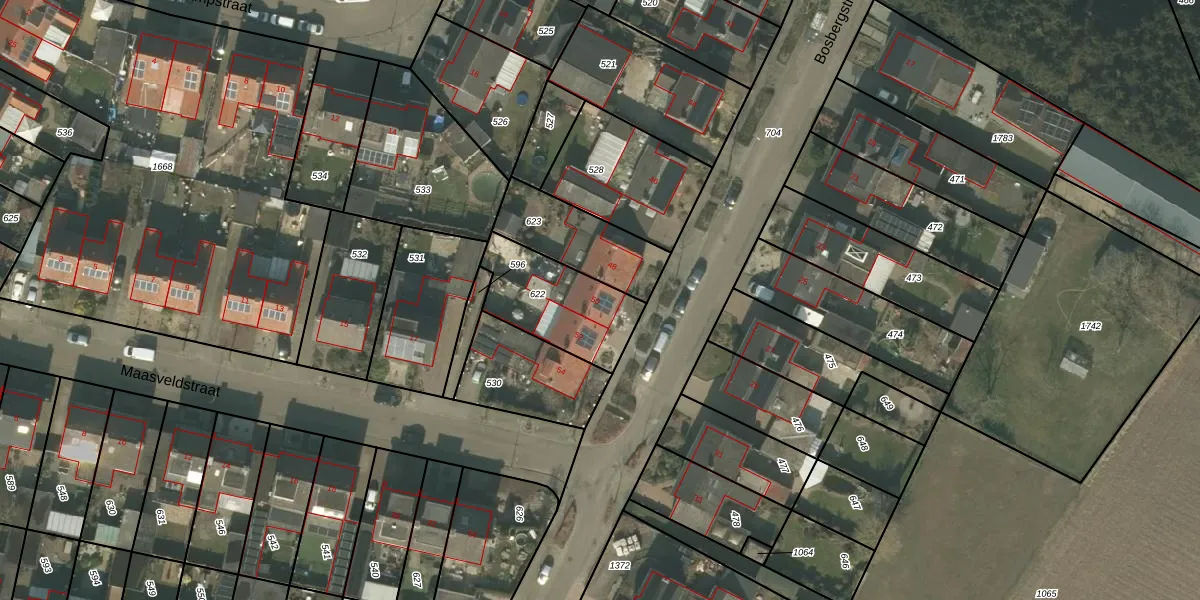 Het perceel waarop Bosbergstraat 50 staat heeft een oppervlakte van 335 m². Dit is een groot perceel. De perceeloppervlakte wordt geregistreerd door het Kadaster. Gedetailleerde informatie over de maten van dit perceel kunt u vinden in het rapport Kadastrale kaart met maatvoering van Bosbergstraat 50.