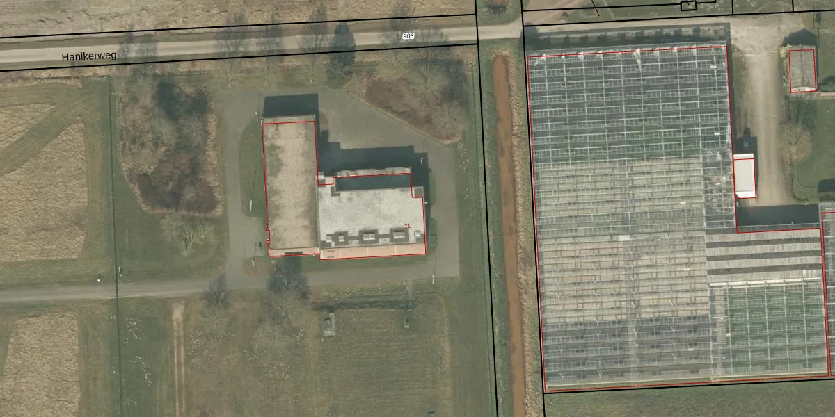 Het perceel waarop Hanikerweg 71 staat heeft een oppervlakte van 8,4 ha. Dit is een zeer groot perceel. De perceeloppervlakte wordt geregistreerd door het Kadaster. Gedetailleerde informatie over de maten van dit perceel kunt u vinden in het rapport Kadastrale kaart met maatvoering van Hanikerweg 71.
