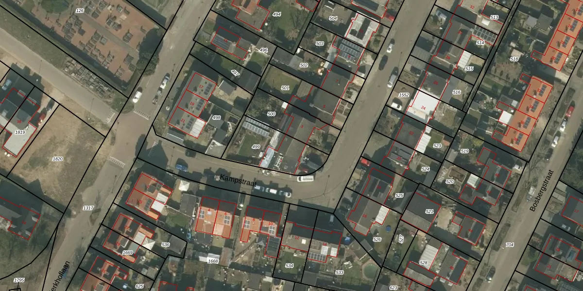 Kampstraat 1 is gelegen op kadastraal perceel ACN00F499. Deze kadastrale aanduiding is uniek en wordt gebruikt door het Kadaster om eigendomsrechten en andere zakelijke rechten vast te leggen. Het perceel maakt onderdeel uit van de kadastrale gemeente Arcen en Velden.