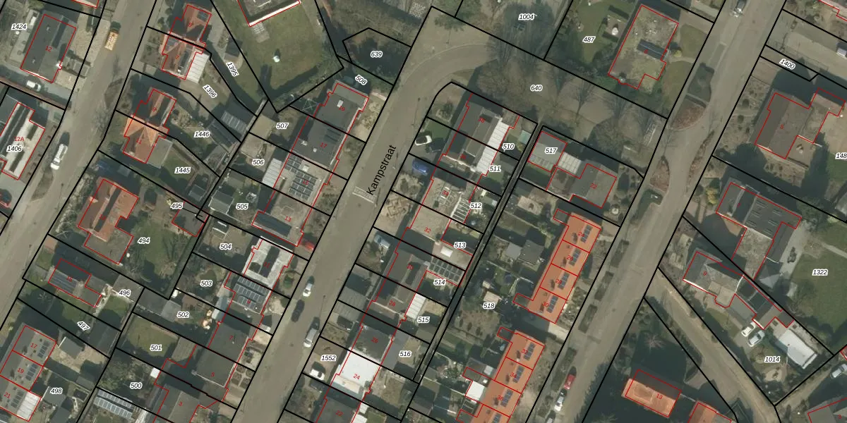 Kampstraat 32 is gelegen op kadastraal perceel ACN00F513. Deze kadastrale aanduiding is uniek en wordt gebruikt door het Kadaster om eigendomsrechten en andere zakelijke rechten vast te leggen. Het perceel maakt onderdeel uit van de kadastrale gemeente Arcen en Velden.