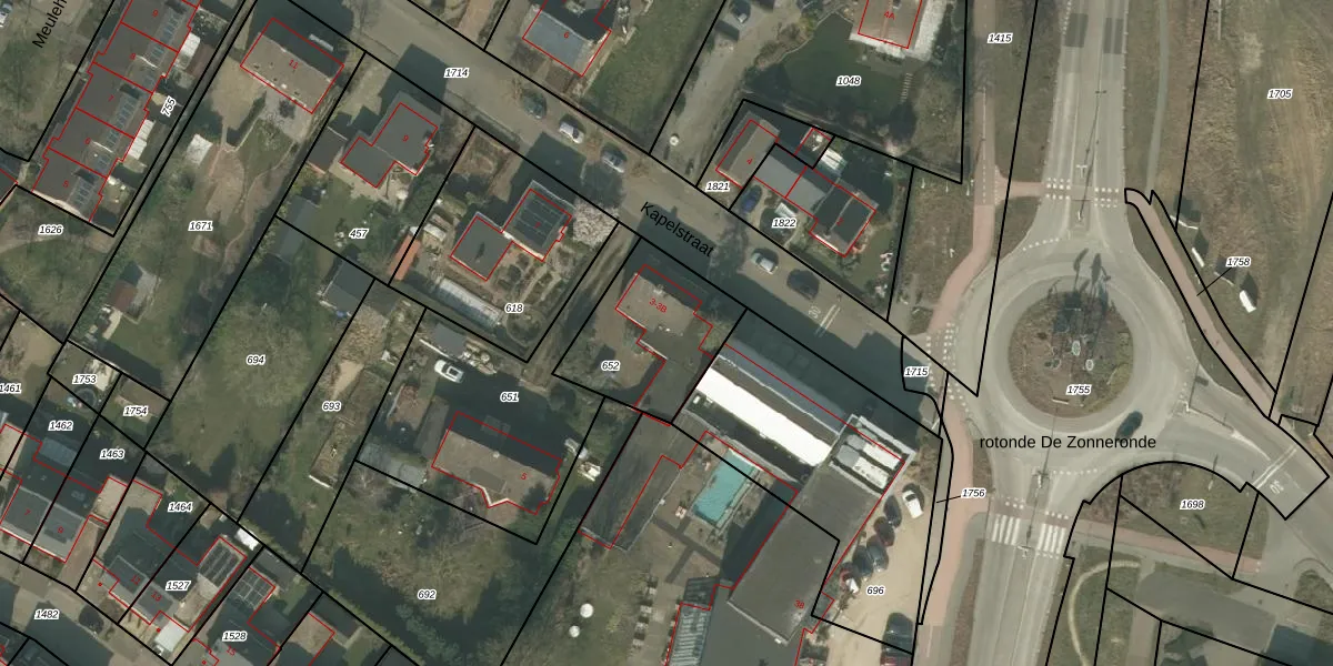 Het perceel waarop Kapelstraat 3-A staat heeft een oppervlakte van 430 m². Dit is een groot perceel. De perceeloppervlakte wordt geregistreerd door het Kadaster. Gedetailleerde informatie over de maten van dit perceel kunt u vinden in het rapport Kadastrale kaart met maatvoering van Kapelstraat 3-A.