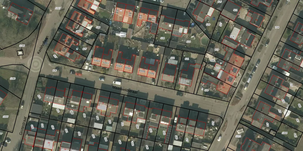 Maasveldstraat 13 is gelegen op kadastraal perceel ACN00F1668. Deze kadastrale aanduiding is uniek en wordt gebruikt door het Kadaster om eigendomsrechten en andere zakelijke rechten vast te leggen. Het perceel maakt onderdeel uit van de kadastrale gemeente Arcen en Velden.