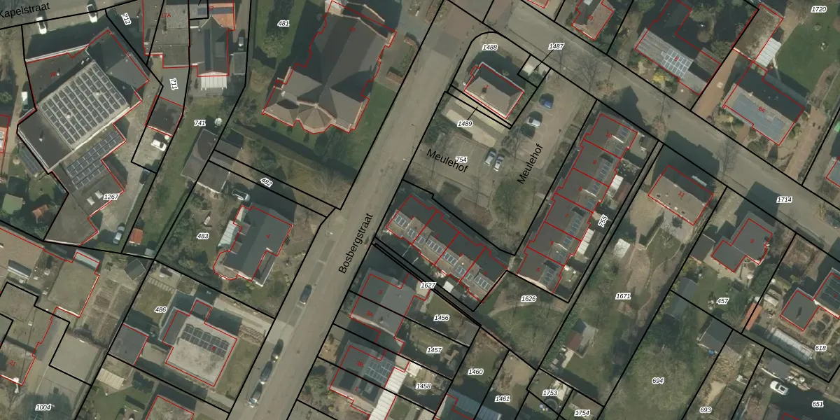 Meulehof 1 is gelegen op kadastraal perceel ACN00F755. Deze kadastrale aanduiding is uniek en wordt gebruikt door het Kadaster om eigendomsrechten en andere zakelijke rechten vast te leggen. Het perceel maakt onderdeel uit van de kadastrale gemeente Arcen en Velden.