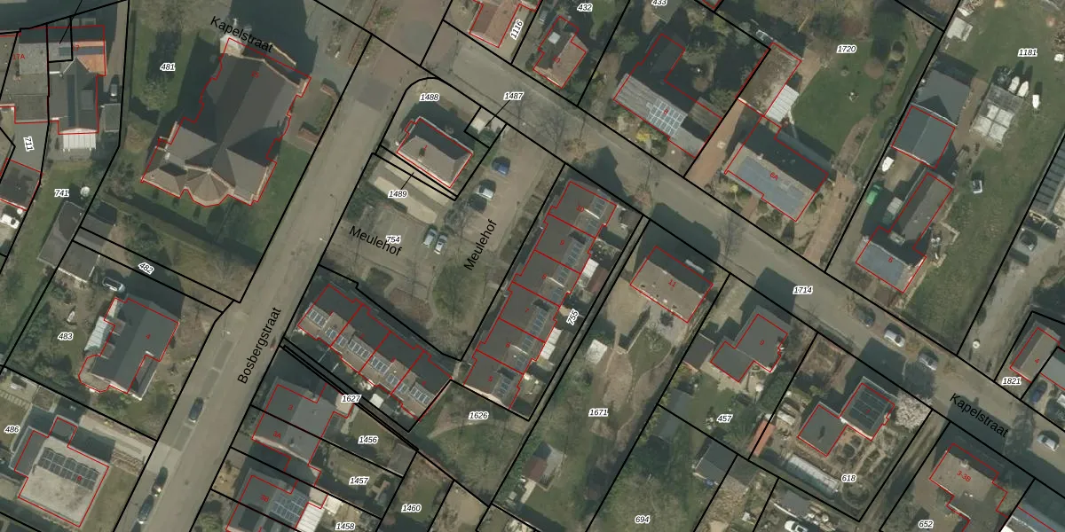 Het perceel waarop Meulehof 8 staat heeft een oppervlakte van 1265 m². Dit is een zeer groot perceel. De perceeloppervlakte wordt geregistreerd door het Kadaster. Gedetailleerde informatie over de maten van dit perceel kunt u vinden in het rapport Kadastrale kaart met maatvoering van Meulehof 8.