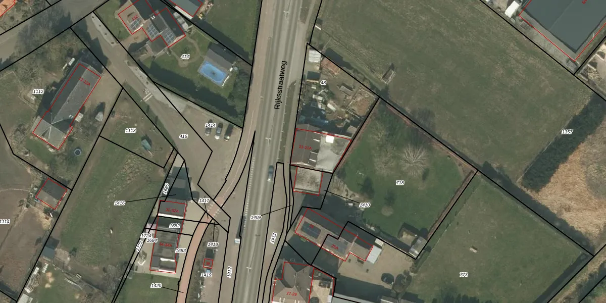 Rijksstraatweg 21 is gelegen op kadastraal perceel ACN00F48. Deze kadastrale aanduiding is uniek en wordt gebruikt door het Kadaster om eigendomsrechten en andere zakelijke rechten vast te leggen. Het perceel maakt onderdeel uit van de kadastrale gemeente Arcen en Velden.