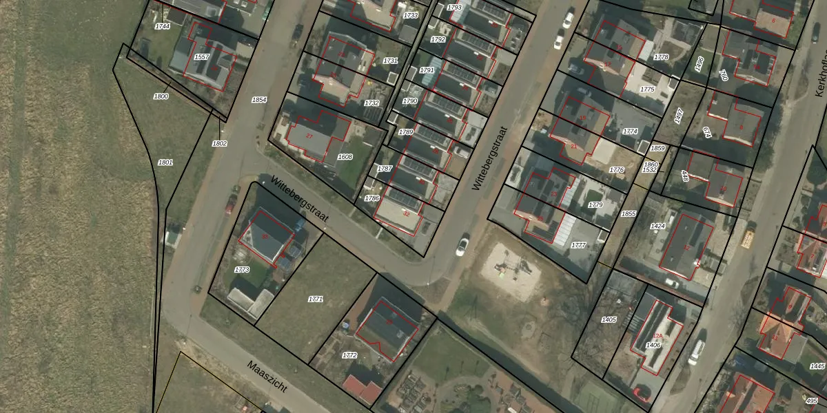 Wittebergstraat 32 is gelegen op kadastraal perceel ACN00F1786. Deze kadastrale aanduiding is uniek en wordt gebruikt door het Kadaster om eigendomsrechten en andere zakelijke rechten vast te leggen. Het perceel maakt onderdeel uit van de kadastrale gemeente Arcen en Velden.