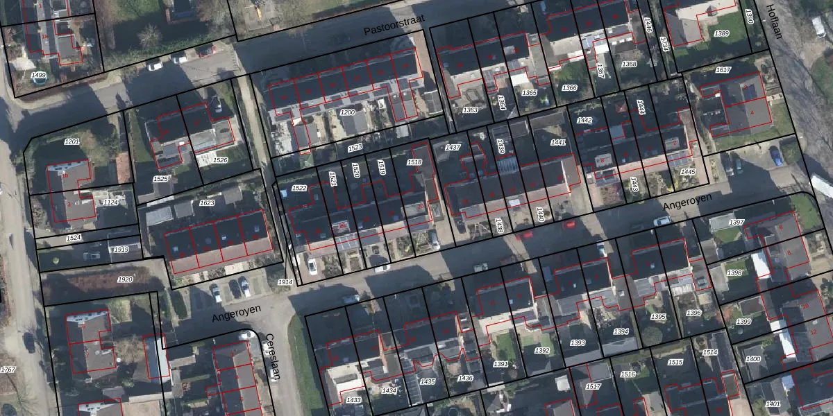 Het perceel waarop Angeroyen 20 staat heeft een oppervlakte van 265 m². Dit is een middelgroot perceel. De perceeloppervlakte wordt geregistreerd door het Kadaster. Gedetailleerde informatie over de maten van dit perceel kunt u vinden in het rapport Kadastrale kaart met maatvoering van Angeroyen 20.