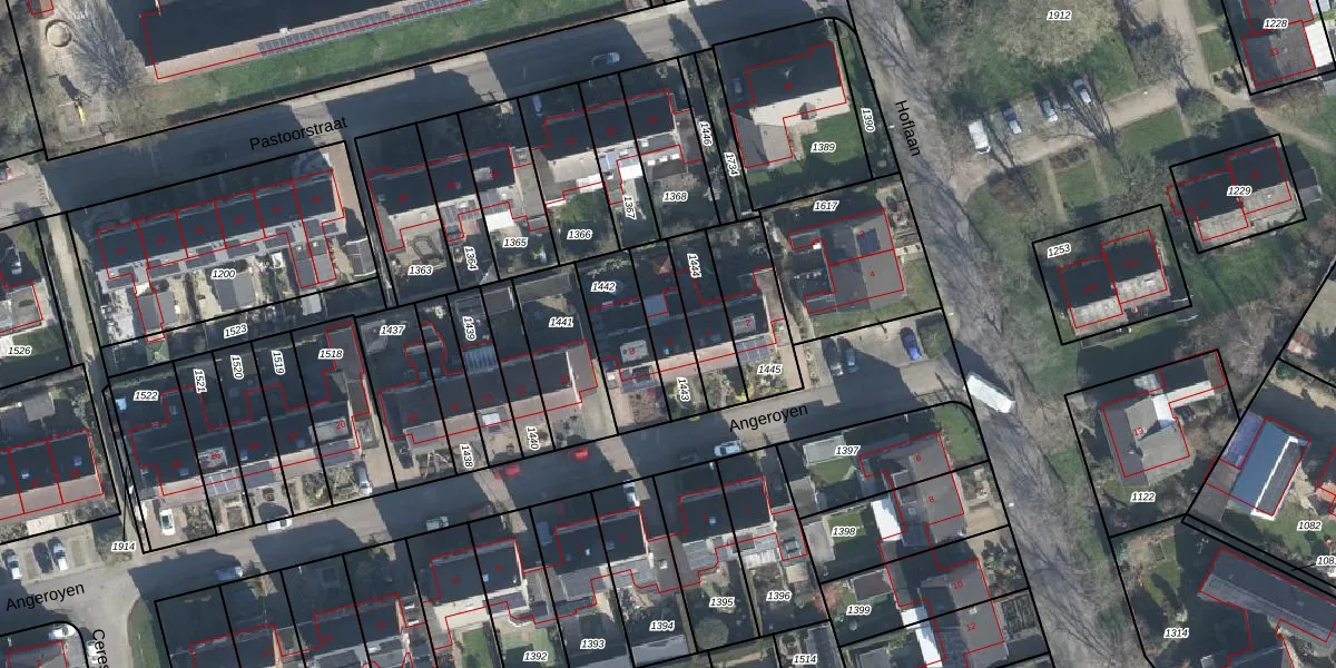 Gebruik de zoekbalk of klik op een perceel voor informatie over de adressen binnen dit perceel.