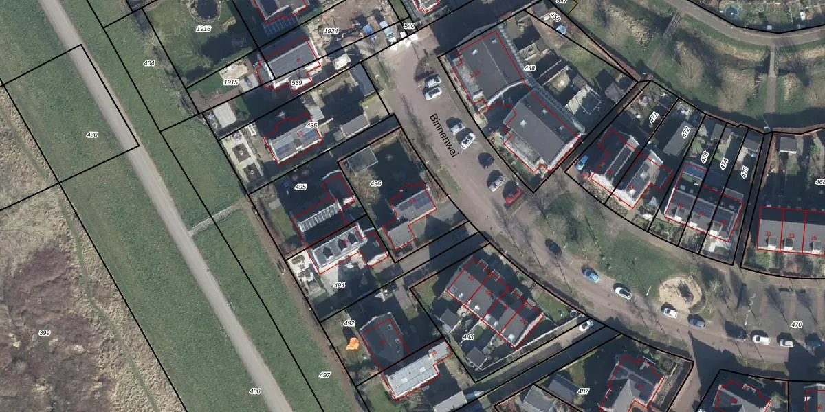 Het perceel waarop Binnenwei 14 staat heeft een oppervlakte van 521 m². Dit is een groot perceel. De perceeloppervlakte wordt geregistreerd door het Kadaster. Gedetailleerde informatie over de maten van dit perceel kunt u vinden in het rapport Kadastrale kaart met maatvoering van Binnenwei 14.