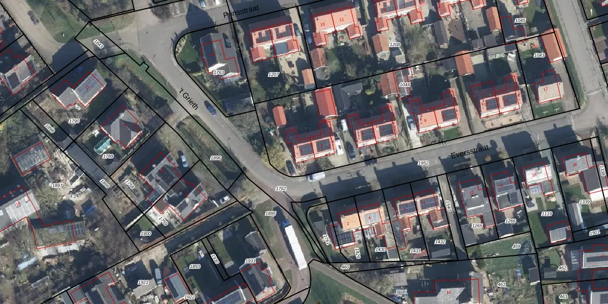 Het perceel waarop Eversstraat 1 staat heeft een oppervlakte van 2353 m². Dit is een zeer groot perceel. De perceeloppervlakte wordt geregistreerd door het Kadaster. Gedetailleerde informatie over de maten van dit perceel kunt u vinden in het rapport Kadastrale kaart met maatvoering van Eversstraat 1.