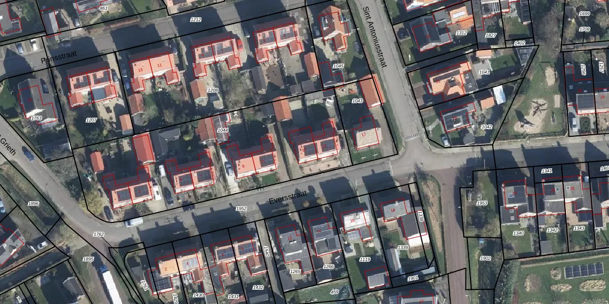 Het perceel waarop Eversstraat 13 staat heeft een oppervlakte van 2353 m². Dit is een zeer groot perceel. De perceeloppervlakte wordt geregistreerd door het Kadaster. Gedetailleerde informatie over de maten van dit perceel kunt u vinden in het rapport Kadastrale kaart met maatvoering van Eversstraat 13.