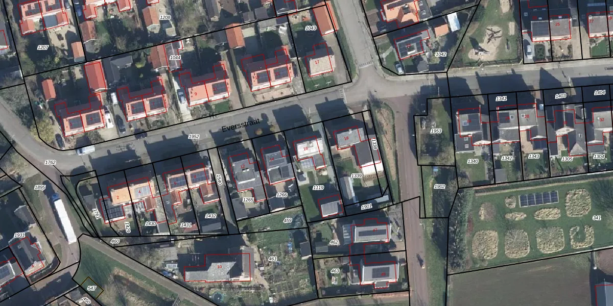 Gebruik de zoekbalk of klik op een perceel voor informatie over de adressen binnen dit perceel.