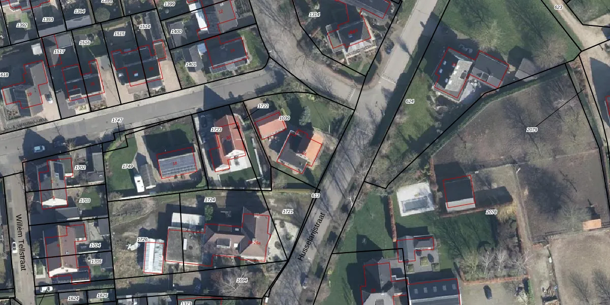 Het perceel waarop Husselarijstraat 24 staat heeft een oppervlakte van 705 m². Dit is een groot perceel. De perceeloppervlakte wordt geregistreerd door het Kadaster. Gedetailleerde informatie over de maten van dit perceel kunt u vinden in het rapport Kadastrale kaart met maatvoering van Husselarijstraat 24.